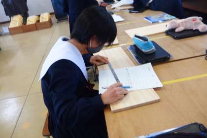 実際は、設計図をもとに板材に線を引いている段階でした。