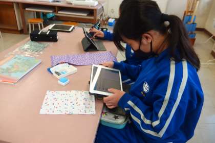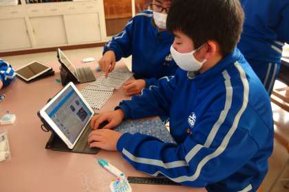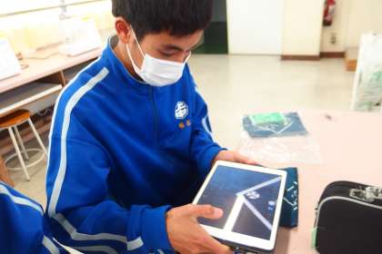縫ったところをタブレットで撮影し、今日の振り返り用紙(タブレット上)に記録していきます。