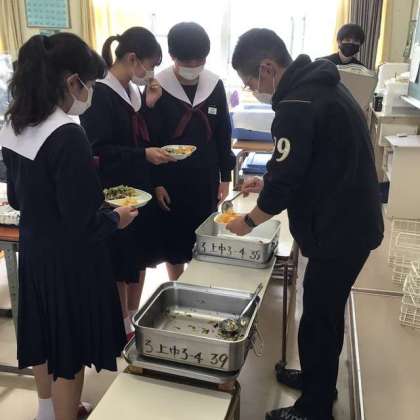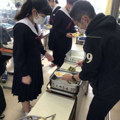 しっかり食べて、午後からのテスト勉強のエネルギーに 【3年4組 給食の時間】