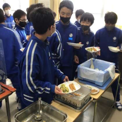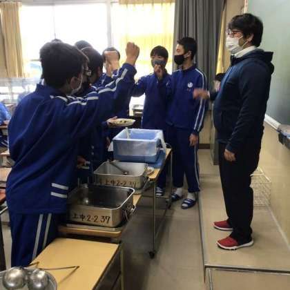 配膳が一通り終わると、この学級でも量を減らす、増やすの調整が行われます。
