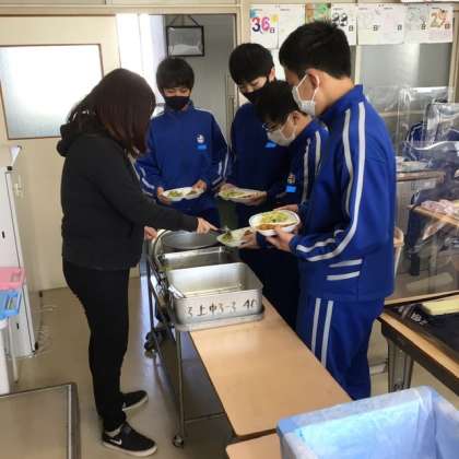 「いただきます」の前、数名の男子生徒が前に出て、担任の先生から量を増やしてもらっていました。
