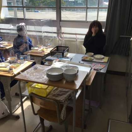 飛沫防止ガードの反射で、顔が光ってしまった子、ごめんなさいね。