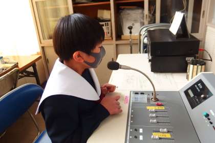 お昼の放送を担当してくれた放送委員と給食献立一口メモを紹介してくれた給食委員です。