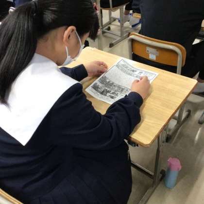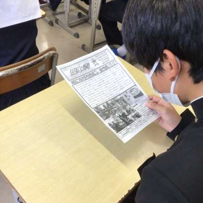 担任の先生が、学級通信を配ります。