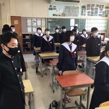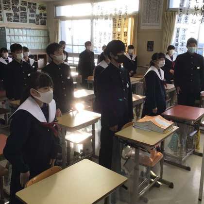 「まん延防止」中は、声を出すあいさつを控えるように、全校で統一しています。