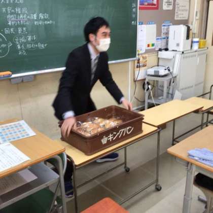 生徒がまだいない!活躍する担任の先生 【2年1組 給食の時間】