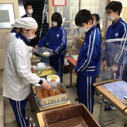 ようやく給食当番の姿が 【2年1組 給食の時間】