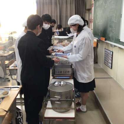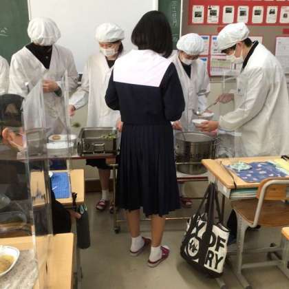 白衣を身に着けて、給食当番を行うのも中学校生活で最後でしょう。