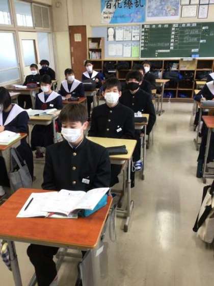 昨日、給食の「いただきます!」で写せなかった男子生徒の一列です。