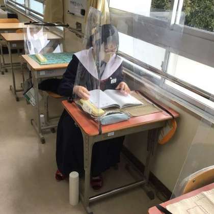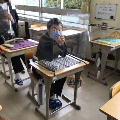 当番ではない生徒は、飛沫防止ガードを設置して、静かに自分の席で待ちます。