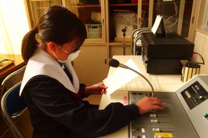 お昼の放送を担当してくれた放送委員と図書室からのお知らせを伝えてくれた図書委員です。