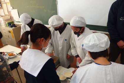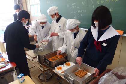 1年生の給食の配膳の様子です。