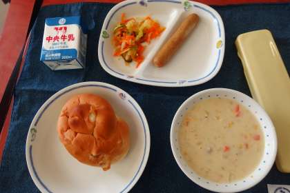 生徒に人気のりんごパンとコーンチャウダーでした。