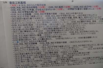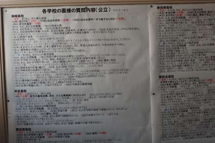 私立高校、専修学校の入試がひと段落して、公立高校の過去の面接内容の掲示に変わりました。