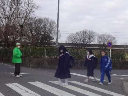 写真のように、地域のボランティアさんに登校を見守っていただけるのは、あと何回でしょうか?