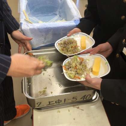 いただきます!の前に、給食の量を減らしたり、増やしたりします。