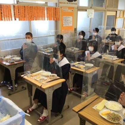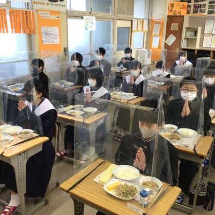 ガードがあっても、黙食が基本です 【1年5組 給食の時間】