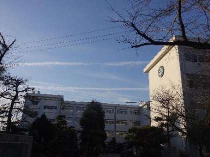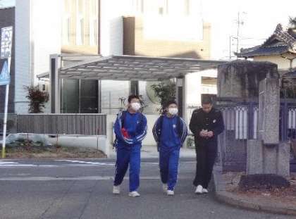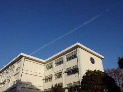 青空に飛行機雲が・・・ 〜今日の登校風景1〜