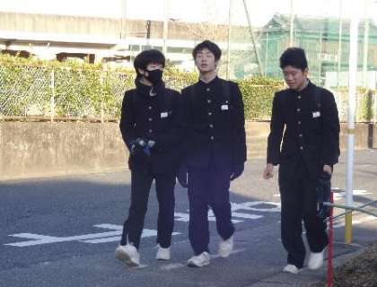 明日の登校時は、雨か雪の予報です 〜今日の登校風景3〜