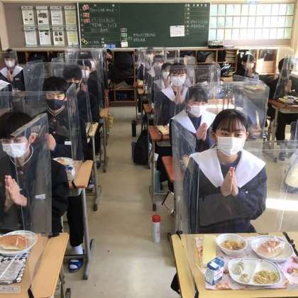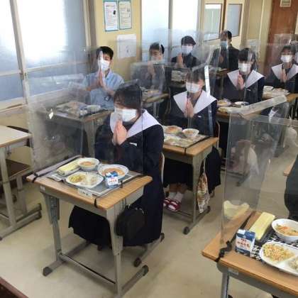 みんなしっかり手を合わせています 【1年4組 給食の時間】