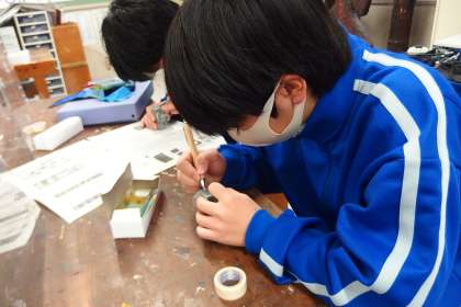 とても集中して「石」に向かっていました。