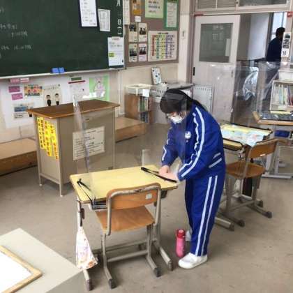 飛沫防止ガードを上手に取り付けます 【1・2学級 給食の時間】