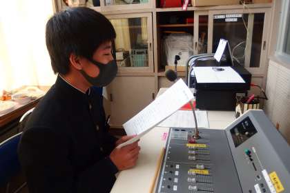 お昼の放送を担当してくれた放送委員と給食献立一口メモを紹介してくれた給食委員です。
