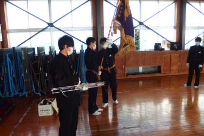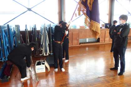 学年末テストが終わり、卒業式に向けて、校旗登壇の2年生メンバーが練習を再開しました。