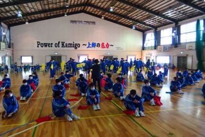 マスゲームの練習をする3年生です。 学年全員がそろっての練習は久しぶりです。