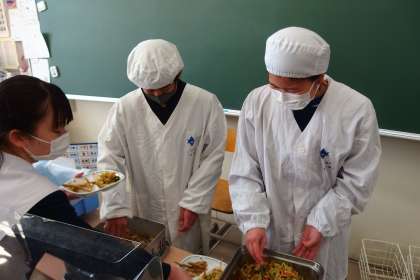 3年生の給食の配膳の様子です。