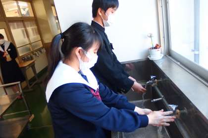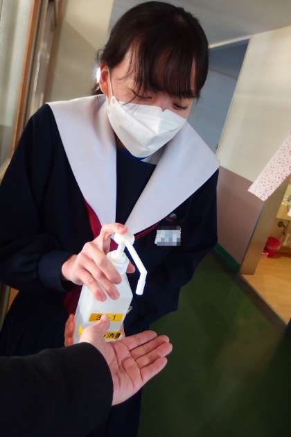 感染症予防のために、今日もしっかりと手洗い、きちんと消毒です。