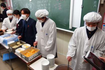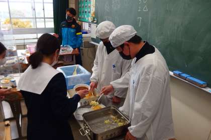 3年生の給食の配膳の様子です。