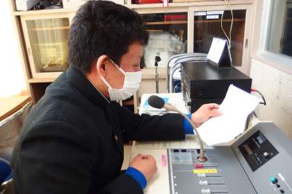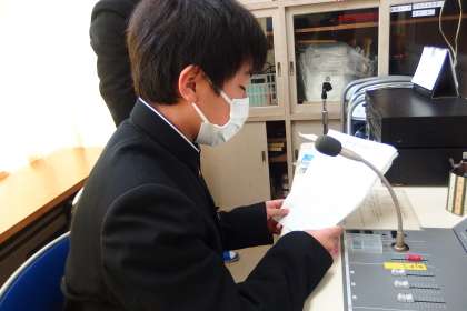 お昼の放送を担当してくれた放送委員と給食献立一口メモを紹介してくれた給食委員です。
