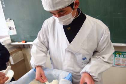 3年生の給食の配膳の様子です。