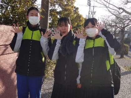 西門付近で声を掛けた生徒たちの「あと5日ポーズ」です。
