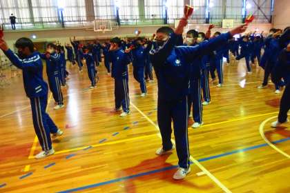 今日のマスゲームの様子は、卒業式の後の時間に、体育館で放映する予定で準備をしています。