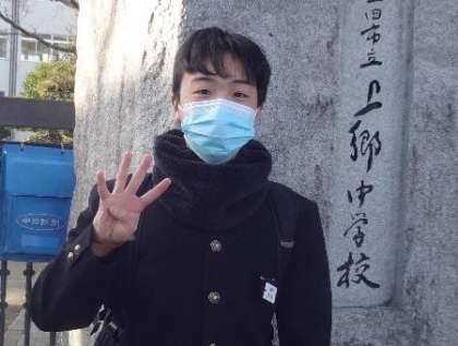 今朝も、正門から登校する3年生に、「あと4日ポーズ」をお願いしました。