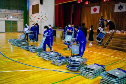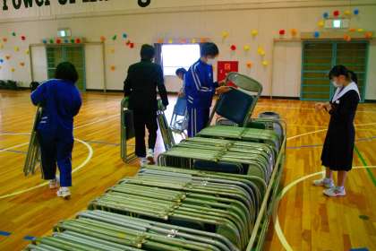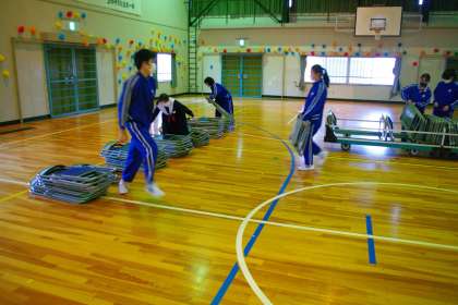 卒業式練習のために、朝早くから準備をしてくれている3年生です。