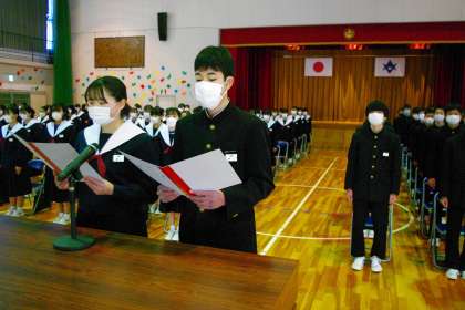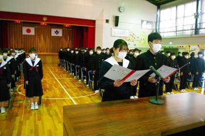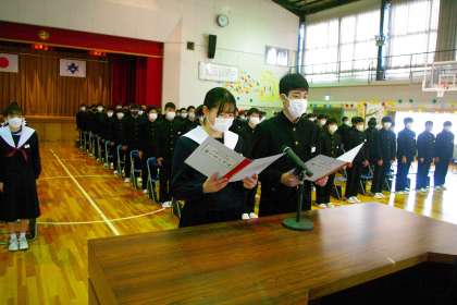 上郷中学校の同窓生の一員となるにあたり、使いのことばを読み上げました。