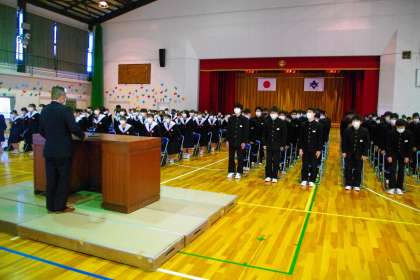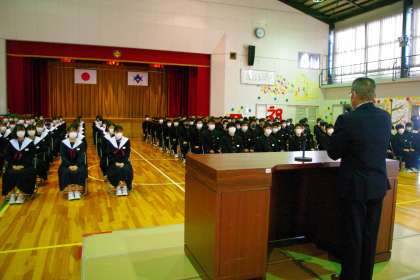 1時間目に同窓会入会式を行いました。