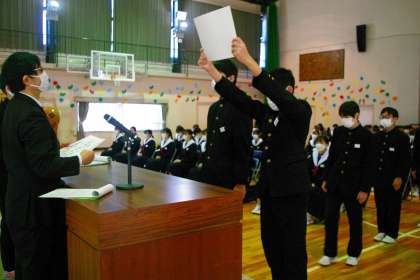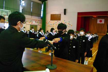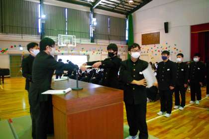 3年生の式練習の中での証書授与の練習の場面です。