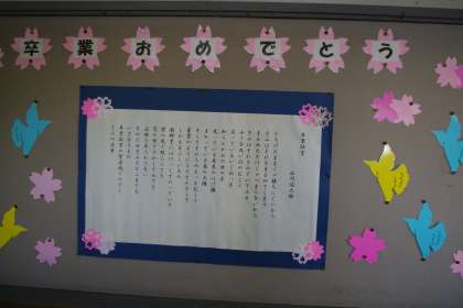 校内のあちこちで「卒業おめでとう」の文字見かけます。
