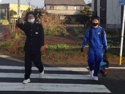 3年生を迎える最後の登校指導でした  〜今日の登校風景1〜