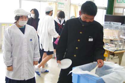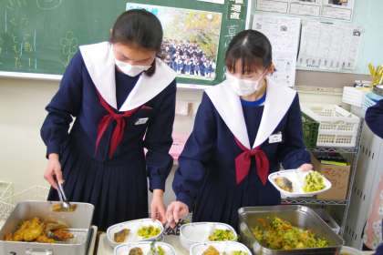 3年生の給食の配膳の様子です。