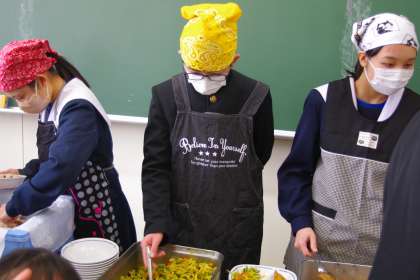 3年生の給食の配膳の様子です。