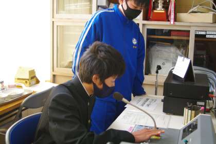 お昼の放送を担当してくれた放送委員と給食献立一口メモを紹介してくれた給食委員です。