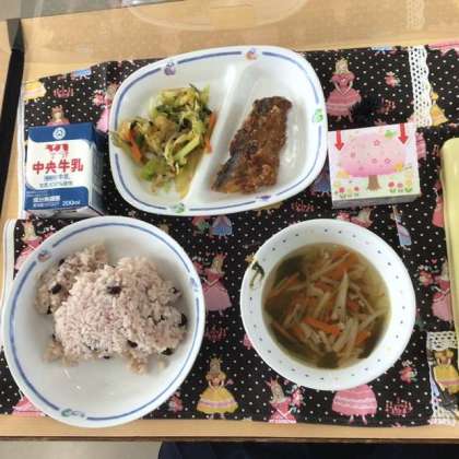 赤飯、沢煮わん、おひたし、さわらのから揚げ、米粉のケーキ(いちご豆乳クリーム)、牛乳というメニューでした。