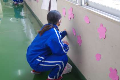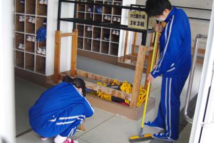 卒業式の準備や清掃をしてくれている1年生と2年生。