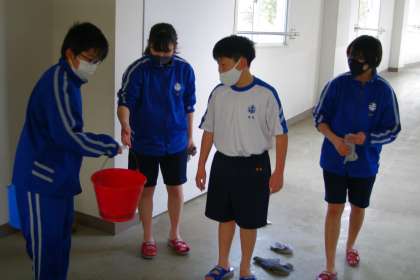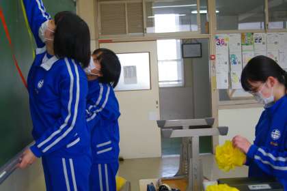 卒業式の準備や清掃をしてくれている1年生と2年生。
