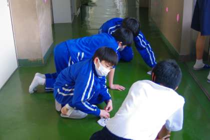 卒業式の準備や清掃をしてくれている1年生と2年生。